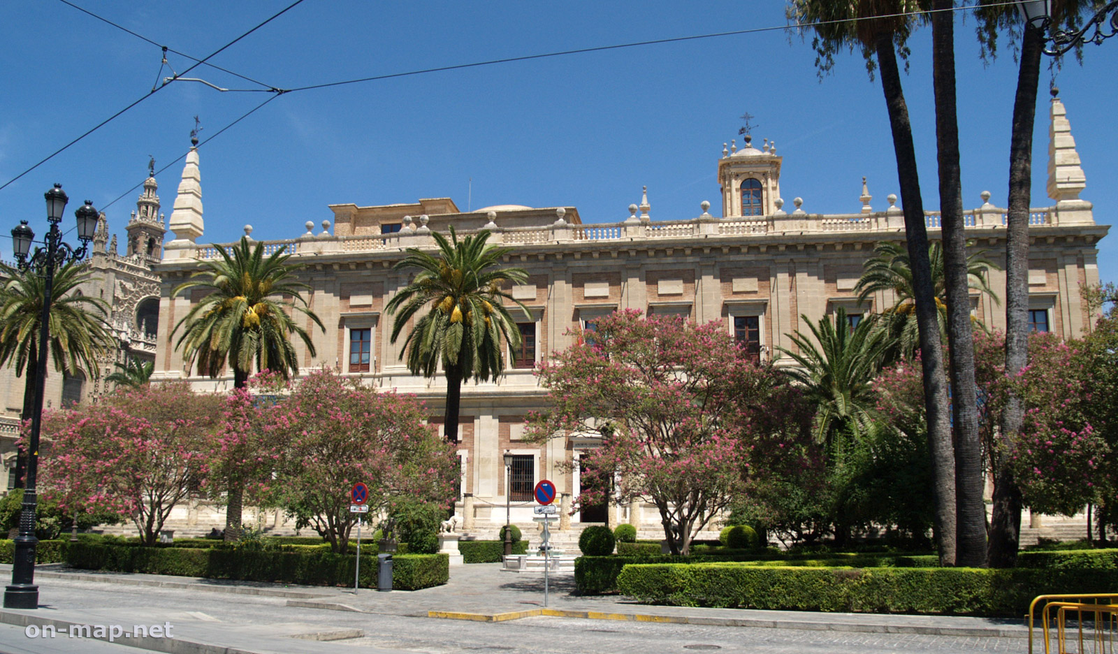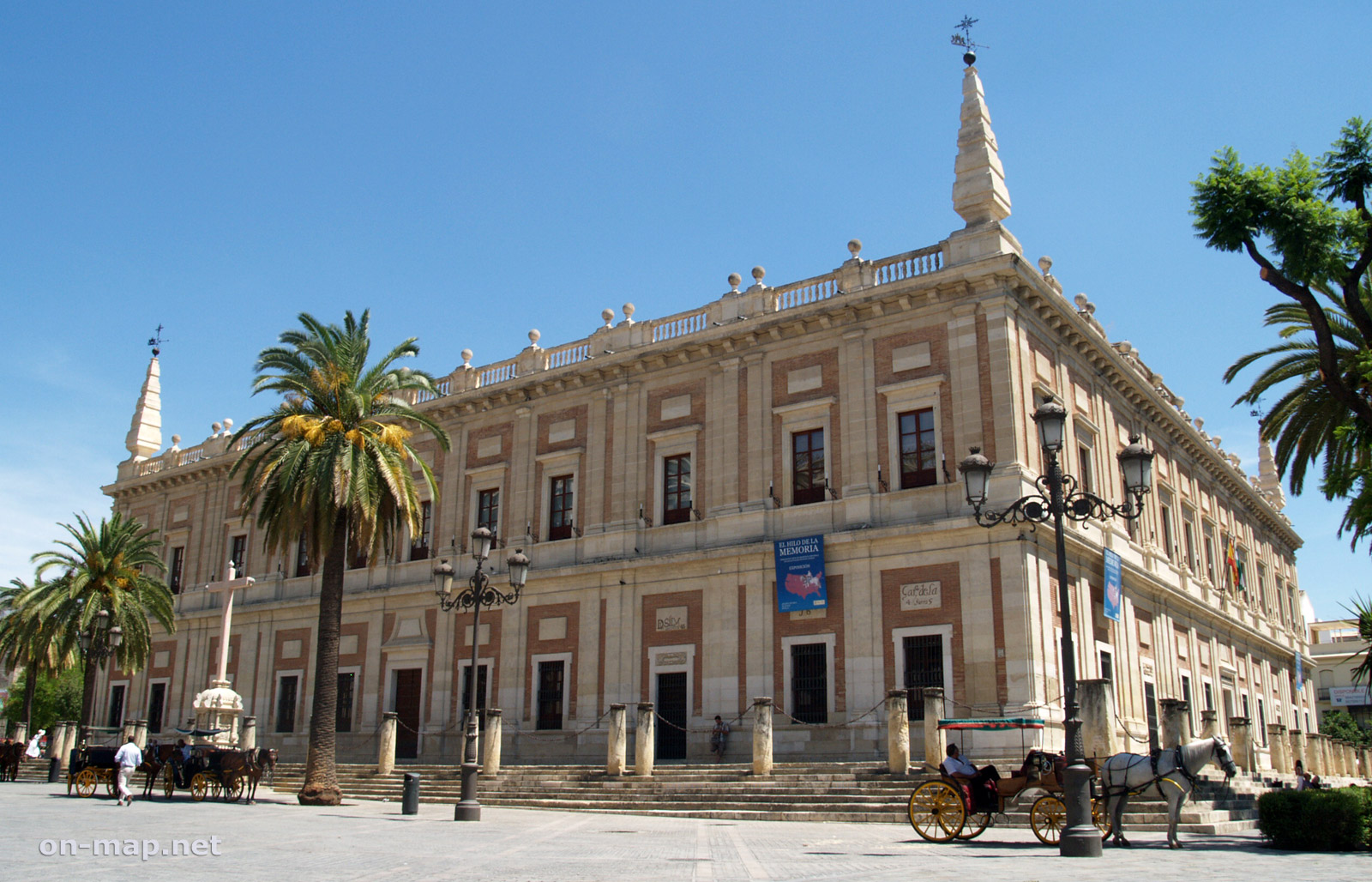 Inside this sober Renaissance building there is a superb marble 18C staircase. On the upper floor, large rooms with superb vaulted ceilings contain countless documents relating to the discovery and the colonisation of America. There you will find the signatures of Christopher Columbus, of Magellan, of Cortès, etc.