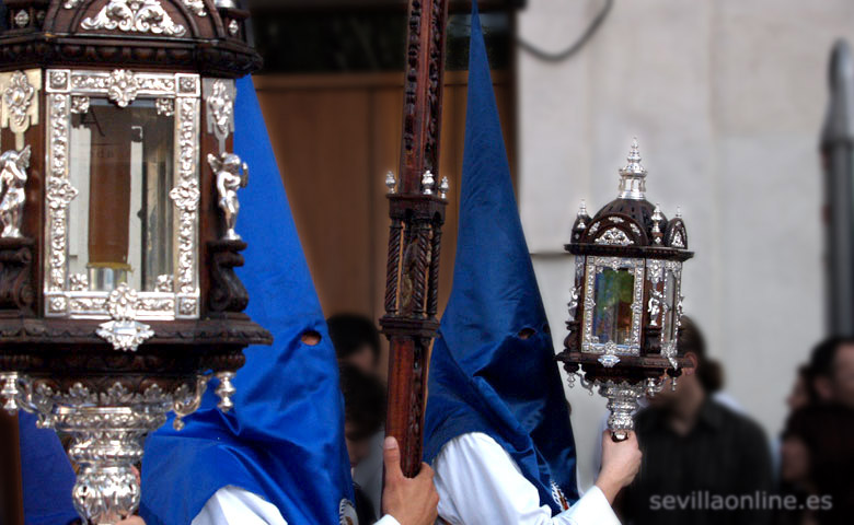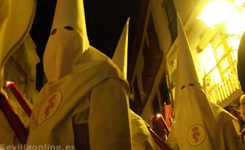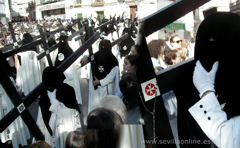 Son los Costaleros que llevan el paso, unos 20 a 30 hombres fuertes, normalmente de la propia hermandad, que pasan casi desapercibidos, por debajo del paso. Son dirigidos por el capataz por las estrechas calles de Sevilla. El paso del Cristo suele ser el primer paso de una procesión. - Los Penitentes