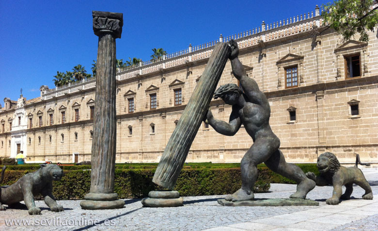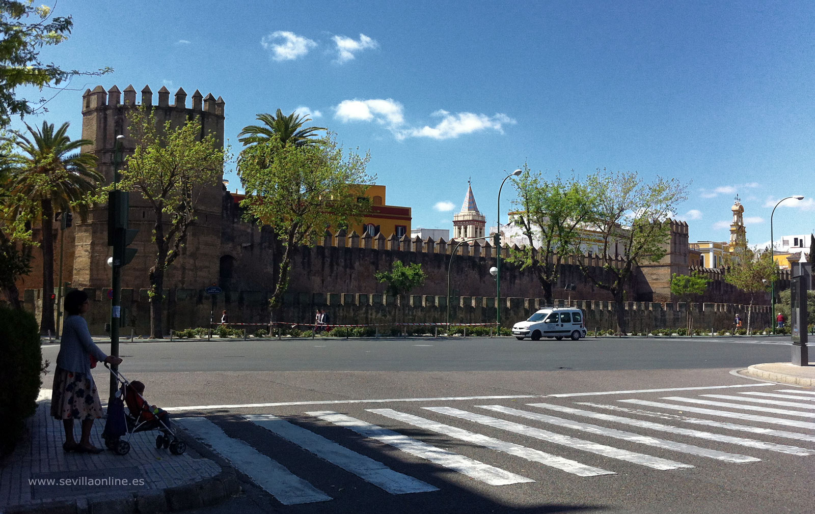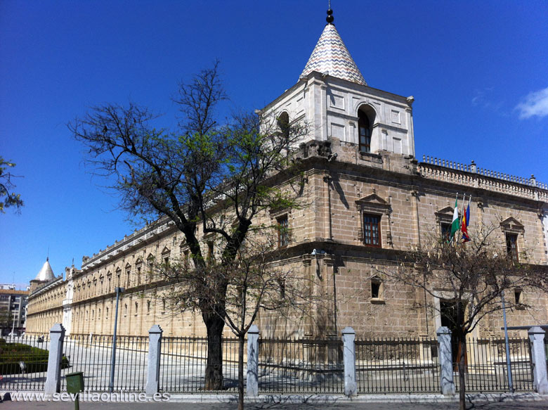 En frente del arco, al otro lado de la "ronda" a la derecha, se encuentra el antiguo hospital de las Cinco Llagas, ahora restaurado, edificio que alberga hoy el Parlamento de Andalucía.