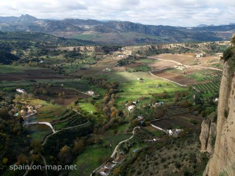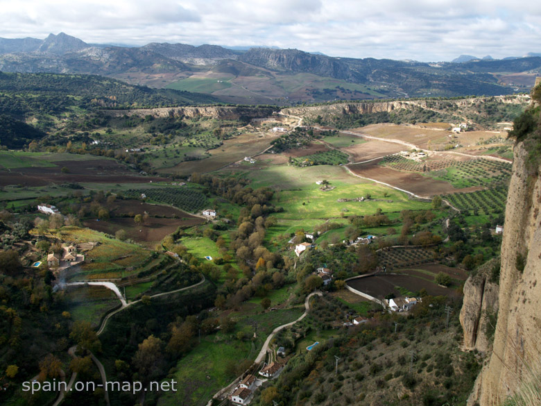 Il Ponte Nuovo (Puente Nuevo) che si solleva fino a 160 m sul fiume Tajo è famoso per la sua spettacolare vista sul precipizio e sulla Serranía di Ronda.