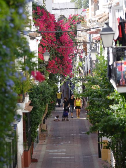 Marbella città, che presenta un centro storico moresco e andaluso ricco di stradine ornate da una moltitudine fiori, come i fiori d'arancio;